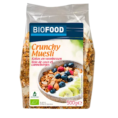 Deze muesli bestaat uit een rijke mengeling van kokos en veenbessen. Geschikt voor een vezelrijk ontbijt!