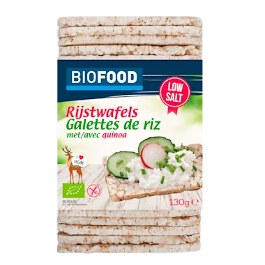 Nood aan een biologische, glutenvrije en zoutarme snack met laag gehalte aan verzadigd vet e? Kies dan voor deze rijstwafel quinoa. Ook lekker als ontbijt of lunch met een lekkere topping erbij.
