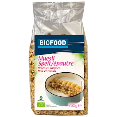 Deze muesli met spelt, noten en rozijn is geschikt voor een vezelrijk ontbijt!