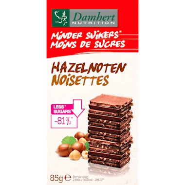 Hou je van melkchocolade, noten en een crunch, maar bevat deze te veel suiker? Kies dan voor deze minder suikers melkchocolade hazelnoot met met liefst 81% minder suikers.