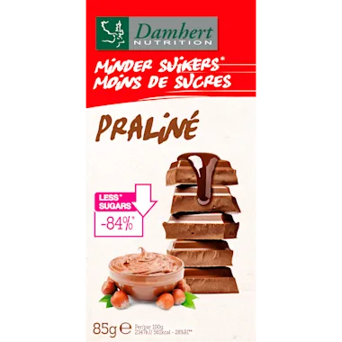 Een warm drankje met chocolade en praliné met een verlaagde suikerwaarde klinkt dat niet hemels? Dit is mogelijk door te kiezen voor deze praliné chocoalde met 84% minder suikers in vergelijking met andere gezoet met suiker.