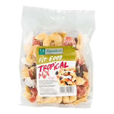 De fit food tropical mix houdt je fit, omdat deze rijk is aan vitaminen, mineralen antioxidanten. Deze mix bevat alles om een goede energieboost te geven na een inspanning als tussendoortje of bij het ontbijt als topping bij (plantaardige) yoghurt.