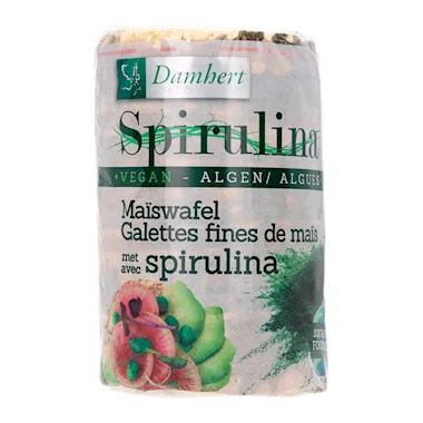 Ken jij de gezondheidsvoordelen van Spirulina algen al? Ze zijn rijk aan vitamine B12 en eiwitten, dat gezonde gevolgen heeft op het hart, bloeddruk en bloedsuikerspiegel. Bovendien werkt het ook nog eens ontstekingsremmend. Het komt jouw lichaam dus alleen maar ten goede om op regelmatige basis een portie spirulina algen te eten. Hierdoor hebben wij ze toegevoegd aan een maiswafel, zodat je spirulina makkelijk in jouw eetpatroon kan toevoegen als ontbijt, snack of lunch.