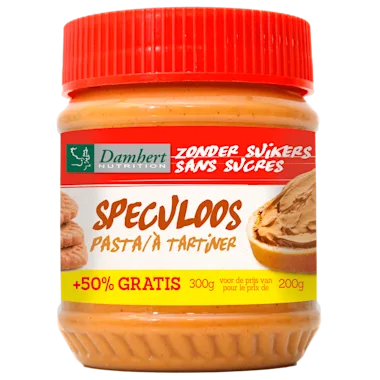 Een typisch Belgische uitvinding, nu ook in een suikervrije variant dankzij Damhert. Dit is niet enkel een spread voor op de boterham, maar je kan er zoveel meer mee. Check daarom onze socials en receptenpagina om zo te ontdekken welke creaties je allemaal kan maken met deze speculoospasta.
