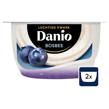 De Danio luchtige bosbessenkwark is heerlijk luchtig en fris. Met een laagje echte zoete bosbes! Voor als je zin hebt in iets lekkers als tussendoortje, snack of toetje. Je kunt het laagje mixen of er juist lekker apart van genieten._x000D_