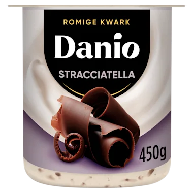Zo, die is lekker!  Danio Stracciatella. Knapperige stukjes chocolade in romige kwark. Zo open, zo op.