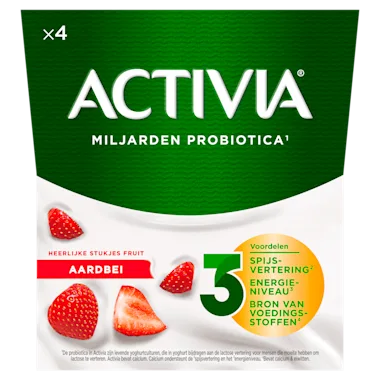 Activia yoghurt aardbei is een heerlijke combinatie van milde yoghurt en stukjes aardbei. Ideaal voor een lekker begin van de dag of als tussendoortje.