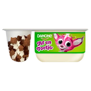 Ingredienten: yoghurt met vanillesmaak: yoghurt (MELK), water, suiker, verdikkingsmiddelen (gemodificeerd maïszetmeel, xanthaangom), pompoen-, en wortelconcentraat, natuurlijke aroma's, zuurteregelaars (citroenzuur, natriumcitraat). Chococrispies (6,7%): TARWEmeel, sucrose, cacaomassa, cacaoboter, volle MELKpoeder, volkoren TARWEmeel, TARWEmoutmeel, palmolie, weipoeder (MELK), glansmiddel (arabische gom), glucosestroop, zout, emulgator (SOJAlecithine), natuurlijk vanille aroma. Kan bevatten: NOTEN, PINDA'S EN EI.