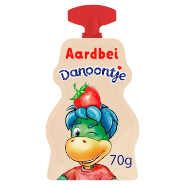 Danoontje Knijpyoghurt Aardbei van Danone is een knijpzakje vol fruityoghurt. Heerlijk als tussendoortje, toetje of traktatie.