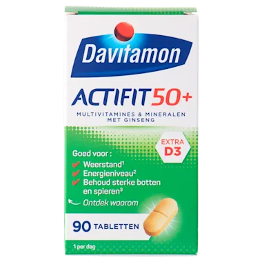 Per dagdosering van 1 tablet:#vitamine A (waarvan 31% bètacaroteen);640;µg;80%#vitamine B1;1,65;mg;150%#vitamine B2;2,1;mg;150%#vitamine B3;16;mg;100%#vitamine B5;6;mg;100%#vitamine B6;2,1;mg;150%#vitamine B8;75;µg;150%#vitamine B11 (foliumzuur);300;µg;150%#vitamine B12;5;µg;200%#vitamine C;120;mg;150%#vitamine D3 (cholecalciferol);10;µg;200%#vitamine E;18;mg;150%#calcium;160;mg;20%#chroom;40;µg;100%#jodium;60;µg;40%#koper;1000;µg;100%#magnesium;75;mg;20%#mangaan;2;mg;100%#molybdeen;100;µg;200%#selenium;55;µg;100%#ijzer;14;mg;100%#zink;10;mg;100%#panax ginsengextract;100;mg#
