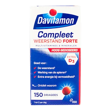 Per dagdosering van 1 tot 2 dragees:#vitamine A;400-800;µg;50-100%#vitamine B1;1,2-2,3;mg;100-200%#vitamine B2;1,4-2,8;mg;100-200%#vitamine B3;16-32;mg;100-200%#vitamine B5;6-12;mg;100-200%#vitamine B6;2,1-4,2;mg;150-300%#vitamineB8;75-150;µg;150-300%#vitamine B11 (foliumzuur);200-400;µg;100-200%#vitamine B12;3,8-7,5;µg;150-300%#vitamine C;90-180;mg;113-225%#vitamine D;5-10;µg;100-200%#vitamine E;12-24;mg;100-200%#calcium;60-120;mg;7,5-15%#chroom;30-60;µg;75-150%#jodium;112,5-225;µg;75-150%#koper;750-1500;µg;75-150%#magnesium;40-80;mg;11-24%#mangaan;1,5-3;mg;75-150%#molybdeen;37,5-75;µg;75-150%#selenium;41,3-82,5;µg;75-150%#ijzer;10,5-21;mg;75-150%#zink;5-10;mg;50-100%#