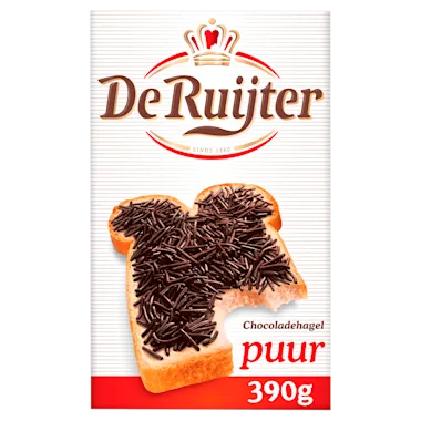 De Ruijter Hagelslag Puur is lekker knapperig en brengt een rijke cacao smaak en genot aan jouw ontbijt en brunch. Geen enkele andere hagelslag smaakt zoals deze. Je kan De Ruijter vruchtenhagel, hagelslag of vlokken puur, witte chocolade of melk chocolade gebruiken als zoet broodbeleg om havermout, yoghurt, ontbijtgranen, brood en baksels nog lekkerder te maken! Wij geven om kwaliteit en duurzaamheid. De Ruijter wil bijdragen aan een betere wereld voor mens en natuur. Daarom kopen wij onze cacao op verantwoorde wijze in bij Rainforest Alliance gecertificeerde boerderijen. www.rainforest-alliance.org