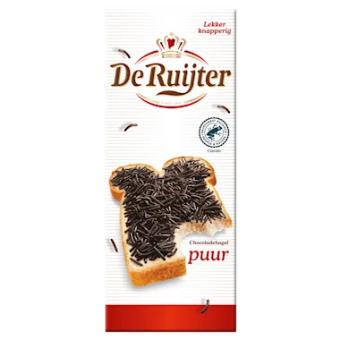 De Ruijter Hagelslag Melk is lekker knapperig en brengt een rijke cacao smaak en genot aan jouw ontbijt en brunch. Geen enkele andere hagelslag smaakt zoals deze. Je kan De Ruijter vruchtenhagel, hagelslag of vlokken puur, witte chocolade of melk chocolade gebruiken als zoet broodbeleg om havermout, yoghurt, ontbijtgranen, brood en baksels nog lekkerder te maken! Wij geven om kwaliteit en duurzaamheid. De Ruijter wil bijdragen aan een betere wereld voor mens en natuur. Daarom kopen wij onze cacao op verantwoorde wijze in bij Rainforest Alliance gecertificeerde boerderijen. www.rainforest-alliance.org