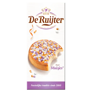 - In 1860 opende C.R. de Ruijter zijn banketbakkerij in Baarn en startte hij met de productie en verkoop van Muisjes®. Muisjes® zijn dan ook het eerste product van De Ruijter.