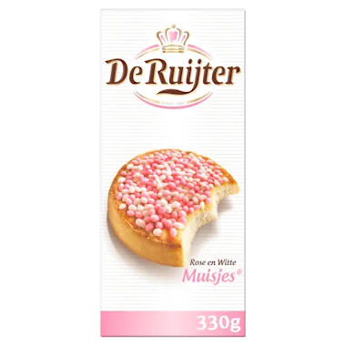 In 1860 opende C.R. de Ruijter zijn banketbakkerij in Baarn en startte met de productie en verkoop van Muisjes®. Muisjes® zijn dan ook het eerste De Ruijter product. Al meer dan 150 jaar vertegenwoordigen Muisjes® de Nederlandse traditie van een toast met Muisjes® bij de geboorte. De Ruijter Roze Muisjes is heerlijk als spread op brood, op beschuit, in de yoghurt, op een cupcake of natuurlijk gewoon uit de hand. Je kan er zelfs leuk mee bakken door gerechten als cupcakes, taarten of gebak te versieren. Met De Ruijter Muisjes® maakt je van elke maaltijd een feestje voor jezelf en jouw kinderen! De Ruijter. Sinds altijd.