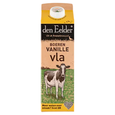 Volle koeMELK (gepasteuriseerd), suiker, maiszetmeel, vanille, zout, curcumine (plantaardige kleurstof).