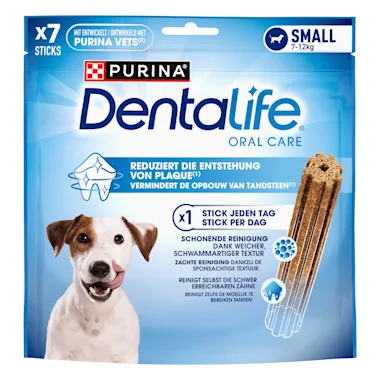 De gezondheid van het gebit is belangrijk voor het welzijn van je hond. Het is wetenschappelijk bewezen dat door dagelijks één lekkere PURINA DENTALIFE kauwstokje te geven, je kunt helpen tandplak en tandsteen te verminderen en de gezondheid van het tandvlees van je hond te ondersteunen.