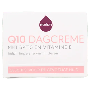 Derlon Q10-dagcrème helpt, door toevoeging van het co-enzym Q10 met antioxiderende werking, de rimpels zichtbaar te verminderen. Bovendien werkt het hydraterend en stimuleert het de energievoorziening van je huid. Daarnaast bevat deze crème een UV-filter (beschermingsfactor 15, UVA/UVB), waardoor je huid beschermd wordt tegen veroudering die ontstaat als gevolg van daglicht. Dermatologisch getest.