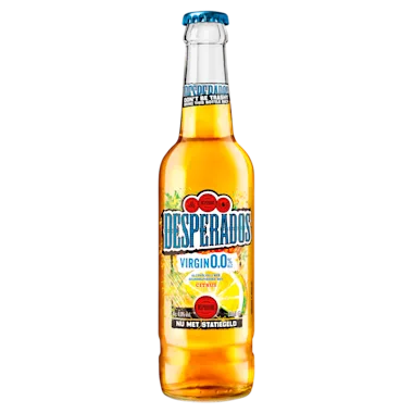 Desperados Virgin 0.0% is een uniek alcoholvrij bier met een geweldige smaak die gegarandeerd voor een vefrissende kick zorgt. Je proeft de ultieme verfrissing van citrus en de pit waar Desperados om bekend staat. Wat de gelegenheid ook is, Desperados Virgin 0.0% brengt altijd goede vibes en gezelligheid. Desperados virgin 0.0%: 100% taste, 0% alcohol.