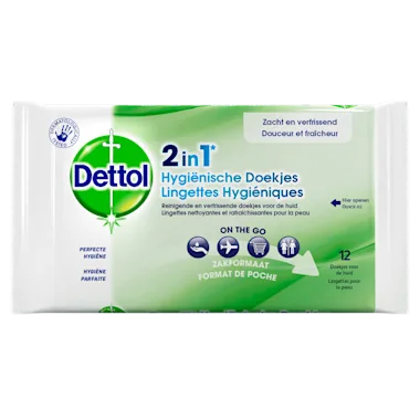 De Dettol 2-in-1 Hygiënische Doekjes zijn geschikt voor te reizen dankzij hun zakformaat. Ze brengen hygiëne en frisheid naar u en uw gezin waar u het nodig heeft: reizen, na het winkelen, het verlaten van openbare toiletten, op een speelplaats ... Derm