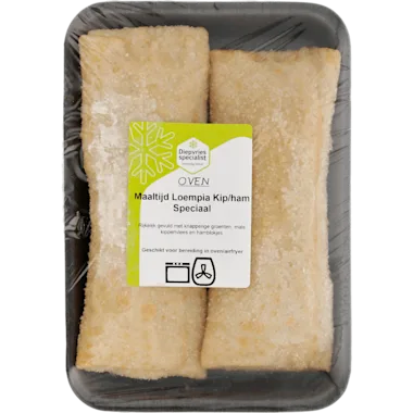 Loempia met groenten, kippenvlees en ham, voorgefrituurd, diepvries.
