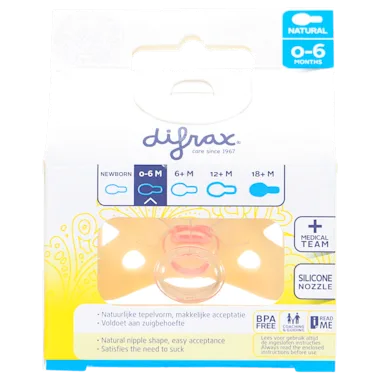 | Fopspenen van Difrax | Deze fopspeen heeft een vlindervormig schildje met een mooi design. De vlindervorm zorgt ervoor dat je baby vrij kan ademen door de neus. Door de gaatjes is er extra luchttoevoer, wat huidirritatie voorkomt. De fopspeen geeft je baby troost, rust en ontspanning. Difrax fopspenen zijn er in vele trendy printjes en verschillende maten.Advies: vervang een fopspeen elke zes weken. Trek dagelijks aan het zuiggedeelte om te controleren of dit onbeschadigd is. | Deze Difrax fopspeen Natural is speciaal ontwikkeld voor pasgeboren baby’s van 0 tot 6 maanden. De speen voldoet aan de zuigbehoefte van je baby. De natuurlijke vorm van de speen zorgt voor een makkelijke acceptatie. |