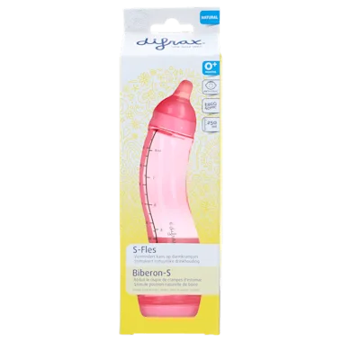 | S-fles Natural voor flesvoeding baby ss | De S-fles heeft een afschroefbare bodem zodat de fles gemakkelijk te vullen is. In de bodem is bovendien een speciaal ventiel verwerkt, dat ervoor zorgt dat er een constante toestroom is van drinken. De ergonomische vorm van de fles zorgt ervoor dat het voeden op een ontspannen en verantwoorde manier gebeurt, zowel voor de ouder als voor het kind. De fles is ook zo ontworpen dat het kind snel geneigd zal zijn om de fles zelf vast te houden. De Difrax S-fles is na gebruik eenvoudig schoon te maken in de vaatwasser. Voor het opwarmen van de melk kun je de fles veilig in de magnetron plaatsen.Let op: Controleer voor elk gebruik of het luchtgaatje in het midden van het ventiel open is door er enige malen in te knijpen. |
