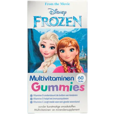 Samenstelling per dagdosering (2 gummies): vitamine A 450µg 56%RI/AR, vitamine C 60mg 75%RI/AR, vitamine D3 5µg 100% RI/AR, vitamine E 10mg 83%RI/AR, vitamine B6 0,5mg 36%RI/AR, foliumzuur 200µg 100%RI/AR, vitamine B12 2,1µg 84%RI/AR, biotine 45µg 90%RI/AR, pantotheenzuur 2,5mg 42%RI/AR, kaliumjodide 30µg 20%RI/AR, zinkcitraat 2mg 20%RI/AR. R.I. = Referentie-Inname / A.R. = Apport de référence.