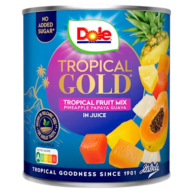 65% fruit in wisselende verhoudingen (ananas*, [rode en / of gele] papaja, guave), ananassap, water, concentraat van passievruchtensap, zuurteregelaar: citroenzuur. *75% rainforest alliance certified™