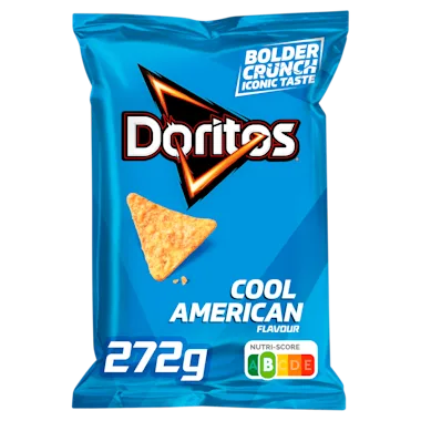 Doritos is een superkrokante tortillachip gemaakt van versgeroosterde maïs, met de heerlijke smaak van Cool American.