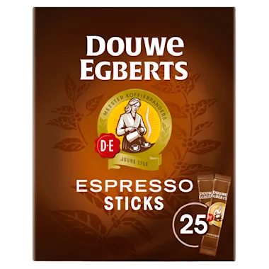 Douwe Egberts Espresso Sticks geven je net even die extra kick met een krachtige koffie in een handomdraai. De blend van donker gebrande Robusta bonen zorgt voor een volle smaak. Op ieder moment en overal door de handige zakjes om mee te nemen.