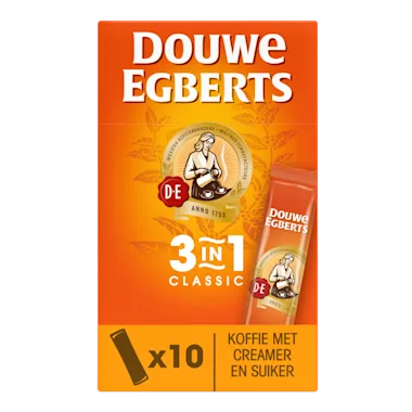 Met Douwe Egberts 3in1 Classic geniet je van een heerlijke koffie met creamer en suiker, gemaakt in een handomdraai. Op ieder moment en overal door de handige zakjes.