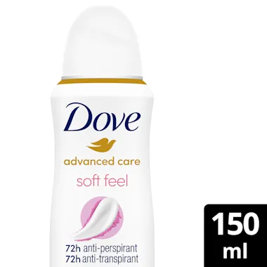 Maar het is niet alleen de luxueuze geur die de Dove Soft Feel Anti-Transpirant Deodorant Spray zo'n goede keuze maakt. Onze betrouwbare formule heeft een drievoudige werking: de anti-transpirant biedt tot 48 uur bescherming tegen zweet, bevat 1/4 hydraterende crème met 100% natuurlijke oliën en helpt om je gevoelige huid te herstellen van irritatie veroorzaakt door het scheren. Je krijgt prachtig zachte en gladde oksels in slechts drie dagen. Dus houd je Dove Soft Feel Anti-Transpirant Deodorant Spray in de buurt als je 's ochtends uit de douche stapt en houd je oksels zacht en verzorgd met Dove anti-transpirant.