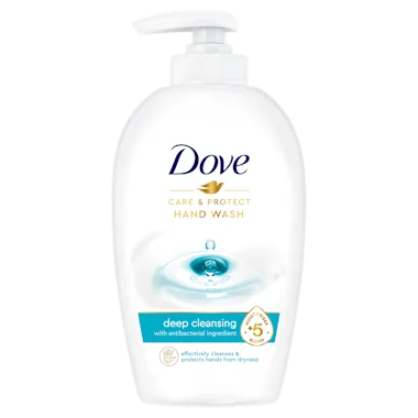 Als je droge handen krijgt van al dat wassen met zeep, is de Dove Care & Protect Verzorgende Handzeep met zeeppomp iets voor jou. De effectieve antibacteriële reinigingsformule is verrijkt met 1/4 hydraterende crème om je handen te voeden, zodat ze na elk gebruik direct zacht, glad en beschermd zijn. Je handen blijven tot 24 uur verzorgd dankzij de +5 Moisturiser Blend. Deze vloeibare handzeep combineert alle voedende verzorging van Dove met een delicate, frisse geur om je dag een vleugje verwennerij te geven. Met een 99% biologisch afbreekbare formule is deze vochtinbrengende handzeep niet alleen goed voor de huid, maar ook voor de planeet, zodat je een verschil kunt maken met je dagelijkse huidverzorgingsroutine. Hydratatie is de sleutel tot een mooie, gezonde huid die de hele dag straalt. De handzeep met 1/4 hydraterende crème droogt je huid niet uit, zoals normale zeep dat doet. Het heerlijke, romige schuim voedt en verzorgt de handen al tijdens het wassen. Dove Care & Protect Verzorgende Handzeep komt in een handige en hygiënische zeepdispenser met zeeppomp.