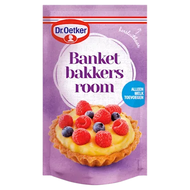 Banketbakkersroom maken wordt een koud kunstje met deze mix. Met Dr. Oetker erbij kan jouw gele room of creme patissiere simpelweg niet mislukken. Het is de perfecte basis voor iedereen die regelmatig bakt. Van soezendeeg tot vruchtentaart en van puddingbroodjesvulling tot eclairs. Je kunt er veel verschillende kanten mee op. Welke kant kies jij? bakken met banketbakkersroom kan trouwens ook! Vervang dan de melk door 400 milliliter melk en 1 ei en bak jouw lekkerste creatie. En voor de vegan banketbakkersroom: vervang de melk door 350 milliliter sojadrink (of een andere plantaardige drink) en geniet net zo goed van de gele room die jouw baksels zoveel lekkerder maakt!