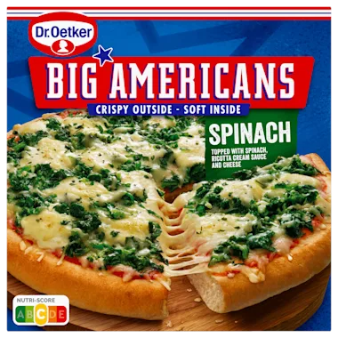 Of je nu een snelle maaltijd nodig hebt na een drukke dag of zin hebt in een avondje comfort food, de Big americans pizza spinach stelt nooit teleur. De luchtige, knapperige, dikke bodem en smaakvolle pizza toppings maken iedere hap tot een feestje. De sappige spinazie, romige ricotta en veel kaas zorgen samen voor een onweerstaanbare smaakervaring. Even in de oven, en je hebt een heerlijke maaltijd waar je niet vanaf kunt blijven. Big americans pizza spinach – voor grote trek en nóg grotere smaak!