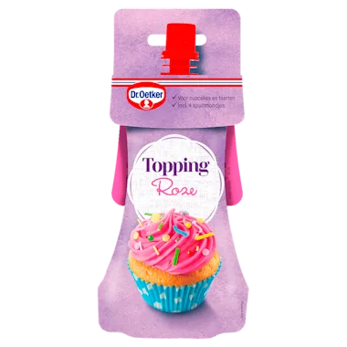 De Dr. Oetker Topping roze is een heerlijke zoete cupcake decoratie. Bij de topping zitten vier verschillende spuitmondjes om mee te varieren. De topping is makkelijk te gebruiken en ook nog eens erg lekker! Spuit de topping op jouw cupcakes of taart en maak het helemaal af met de vrolijke decoratie van Dr. Oetker. Tip: wil je cupcakes met marsepein versieren? Doe dan eerst een laagje topping op de cupcake. Zo blijft de marsepein smeuïg en blijven de versiersels beter op de cupcake plakken. Bovendien is het ook nog eens extra lekker!
