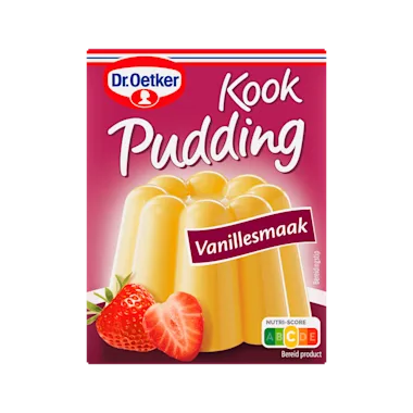 Zelf toevoegen: 500 ml (0,5 l) melk Bereidingswijze: (voor 4 porties) 1. Meng in een kopje de inhoud van het pakje met 6 eetlepels van de 500 ml koude melk. 2. Breng de melk, al roerende, aan de kook. Neem de pan van het vuur en voeg het aangemaakte puddingpoeder al roerend aan de melk toe. 3. Laat dit onder voortdurend roeren nog 2 minuten op een laag vuur zachtjes doorkoken. 4. Schenk de pudding in de vorm. U kunt de pudding ook direct over schaaltjes verdelen. Tip: Om de pudding gemakkelijk te storten: spoel een puddingvorm om met koud water, schenk de pudding hierin en zet deze 4 uur in de koelkast. Tip: Voorkom een vel op de pudding door deze na het koken af te dekken met huishoudfolie. Doe dit niet als de pudding wordt gestort, omdat deze anders te zacht blijft.