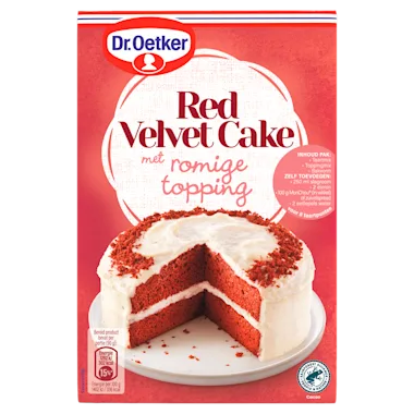Dr. Oetker Red velvet cake of cupcake, waar heb jij zin in? Je kunt kiezen, want met deze cakemix kan het allebei! Dr. Oetker Red velvet cake is een zachte en luchtige taart met een vleugje cacao in een mooie rode kleur. De romige roomkaastopping op basis van monchou of zuivelspread maakt deze traktatie helemaal af. Eenvoudig te bereiden met de bijgeleverde bakvorm.
