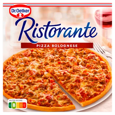 Met de Ristorante pizza bolognese haal je de rijke, hartige smaken van een klassieke bolognesesaus naar je pizza. De dunne, krokante bodem biedt de perfecte basis voor het malse rundergehakt, de mozzarella en Edammer kaas. Deze pizza combineert het beste van pizza en pasta in één gerecht. Ideaal voor een gezellige, romantische avond of een snelle, makkelijke maaltijd.