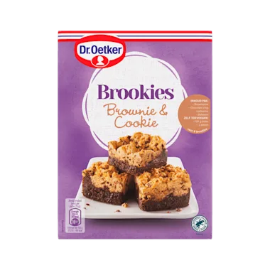 Deze traktatie is een onweerstaanbare combinatie van een smeuïge brownie met een topping van chocolate chip cookies. Perfect voor iedereen die dol is op chocolade! Stel je voor: de rijke, fudgy brownie onderlaag en daarbovenop een knapperige laag vol met chocochips. Het beste van twee werelden in één hap! Terwijl de brookies in de oven staan, vult je keuken zich met de heerlijke geur van versgebakken brownies en koekjes, instant feestje gegarandeerd. Of je nu een verjaardag hebt, een filmavond organiseert of gewoon jezelf wilt trakteren, met deze bakmix is het altijd feest. Met Dr. Oetker Brookies zet je in no-time een waanzinnig dessert of heerlijke traktatie op tafel.