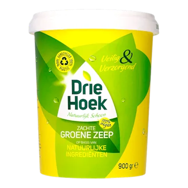 Driehoek zachte Groene Zeep kunt u gebruiken voor vele toepassingen zoals bijvoorbeeld het reinigen van vloeren, tegels, sanitair, douche, toilet, etc. Ook voor kleine handwasjes en vlekken in uw kleding is het prima te gebruiken! Op geverfde oppervlakken bij voorkeur niet onverdund gebruiken. Tafel & vloer, keuken, sanitair, kleding. Kijk voor meer tips op www.driehoekzeep.nl. Dosering: 3 eetlepels oplossen in emmer warm water (8 tot 10 liter). Gebruiken met spons, borstel of doek. Bij vlekken: de zeep direct aanbrengen op de vlek en even in laten weken. Verdund: Naspoelen overbodig. Onverdund: Naspoelen met schoon water. 100% Vegan.