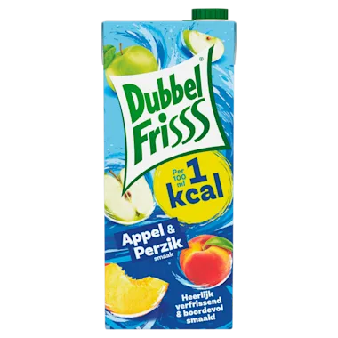 DubbelFrisss 1kcal Appel-Perzik heeft een lekkere volle smaak, zonder de calorieën. Met de lekkerste fruitcombinaties maken we van DubbelFrisss voor iedereen een feestje.