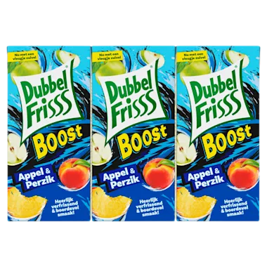 Laat je verrassen door de verfrissende combinatie van Appel en Perzik! DubbelFrisss Boost Appel - Perzik is een vruchtenfrisdrank met ten minste 15% heerlijk vruchtensap en een vleugje zuivel.