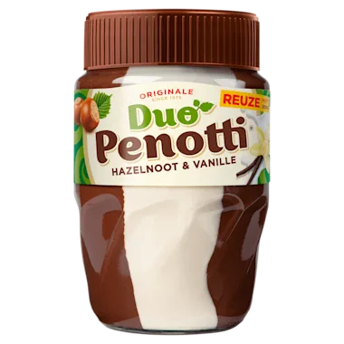 Duo Penotti, dubbel lekker in een potti, is de originele hazelnootpasta met de 2 kleuren.