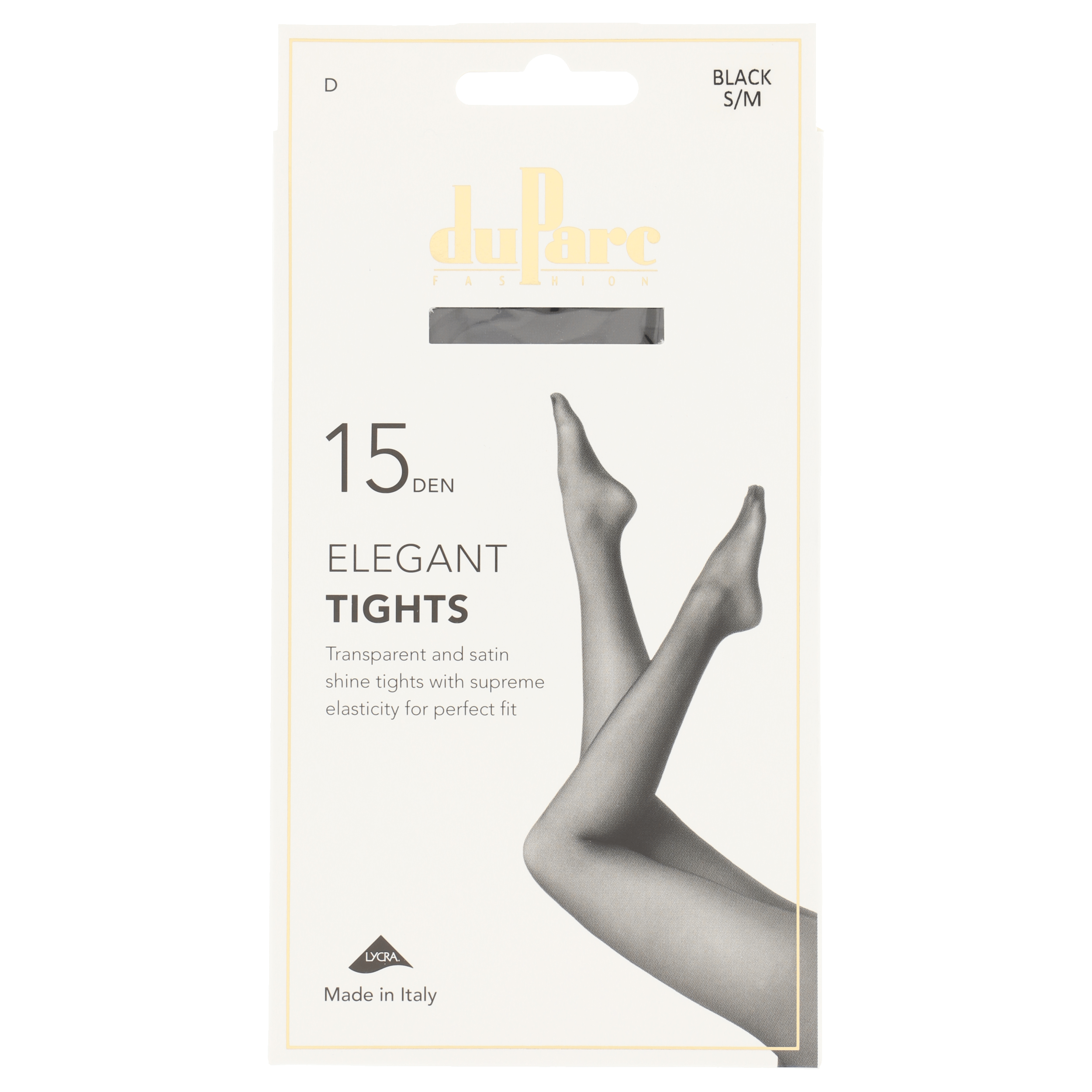 | duparc-panty-elegant-zijdeglans-zwart-s-m-15-denier | De pantys van duParc combineren superieure Italiaanse kwaliteit met ultiem draagcomfort! Deze transparante panty heeft een lichte glans, wat een subtiel satijneffect op jouw benen creëert. Ideaal om jouw outfit helemaal compleet te maken!De pantys van duParc worden gemaakt van hoogwaardige materialen, zodat ze altijd heerlijk zitten. Het ontwerp heeft platte naden, zodat de panty geen afdrukken in de huid achterlaat. Je hoeft ook niet bang te zijn dat hij afzakt: dankzij de elastische lycra sluit de panty perfect aan op je benen. De Elegant panty is afgewerkt met een brede tailleband, die niet knelt en jou nog meer draagcomfort geeft, en een versterkt teenstuk voor een langere levensduur. Het katoenen kruisje creëert de perfecte pasvorm en biedt extra hygiëne. De pantys van duParc geven iedere vrouw een prachtige uitstraling! | Laat je benen schitteren in de duParc Panty Elegant! Deze panty heeft een lichte glans en is transparant tot aan de taille. Ideaal voor onder een korte rok of broekje! Dankzij de lycra, de platte naden en de brede tailleband zakt de panty niet af en geniet je de hele dag van ultiem draagcomfort. |