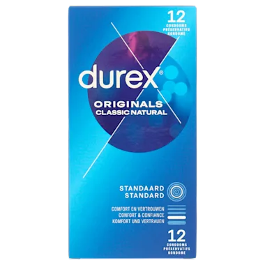 Iedereen is anders, maar de juiste pasvorm moet altijd comfortabel en veilig zijn. Durex Originals Classic Natural condooms zijn de originele Durex-condooms, betrouwbaar als altijd. De condooms zijn gemaakt van transparant, natuurlijk rubber latex en hebben een prettige geur. De Pleasure-FitTM pasvorm met reservoir is speciaal gevormd voor meer comfort. Geen enkel voorbehoedsmiddel biedt u een 100% betrouwbare bescherming tegen zwangerschap, hiv (aids) of andere seksueel overdraagbare aandoeningen. Lees de gebruiksaanwijzing aan de binnenkant van de verpakking aandachtig door, vooral bij gebruik van het condoom voor anale of orale seks.