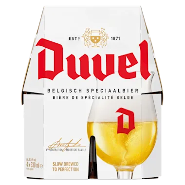 Duvel is een natuurlijk bier met een subtiele bitterheid, een verfijnd aroma en een uitgesproken hopkarakter. Het aparte brouwproces, dat zo’n 90 dagen duurt, garandeert een pure stijl, een delicate pareling en een aangename alcoholzoete smaak.