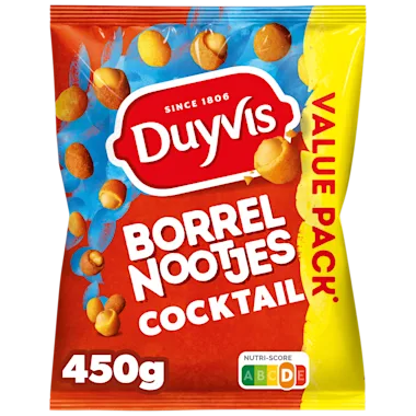 Duyvis Borrelnootjes® Cocktail zijn heerlijke pinda’s met een knapperig jasje in een hartige smaak. Deze nootjes zijn gemaakt om de fuif te brengen! Haal dus snel jouw welbekende favoriet in huis. Zonder kunstmatige kleurstoffen.