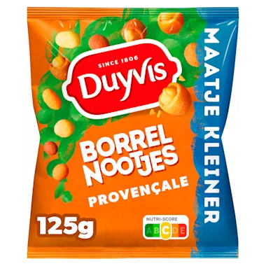 Duyvis Borrelnootjes® Provencale zijn heerlijke pinda’s met een knapperig jasje in een ui- en knoflooksmaak. Deze nootjes zijn gemaakt om de fuif te brengen! Haal dus snel jouw welbekende favoriet in huis. Zonder kunstmatige kleurstoffen.
